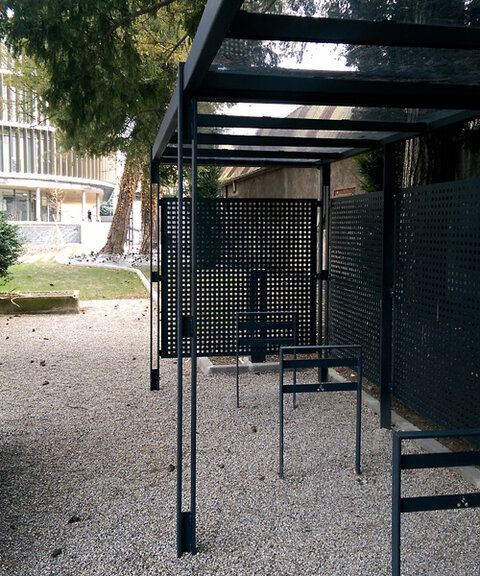 Paneles laterales: policarbonato cristal 6 mm o 2 mm de la placa o panel perforado con listones de madera 20x60 mm.