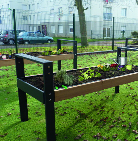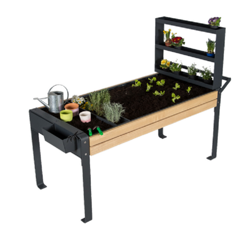 Cultivo de vivaistica dirigido a actividades de ortoterepia. La tabla está diseñada para dar la oportunidad de hacer actividades ortoterapia a las personas con movilidad reducida o mala. Específicamente permite a la gente para trabajar tanto en pie y en silla de ruedas (silla de ruedas frontal en la mesa o elemento adicional de la biblioteca).