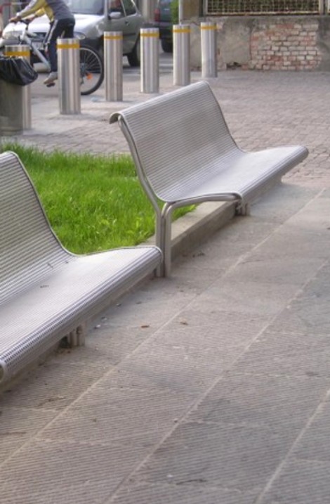 "Euroform " ofrece toda una serie de productos, por ejemplo en el contorno banco, también en acero inoxidable. Estas soluciones nobles y agradables, en combinación con la madera hacen hincapié en la elegancia de los espacios públicos